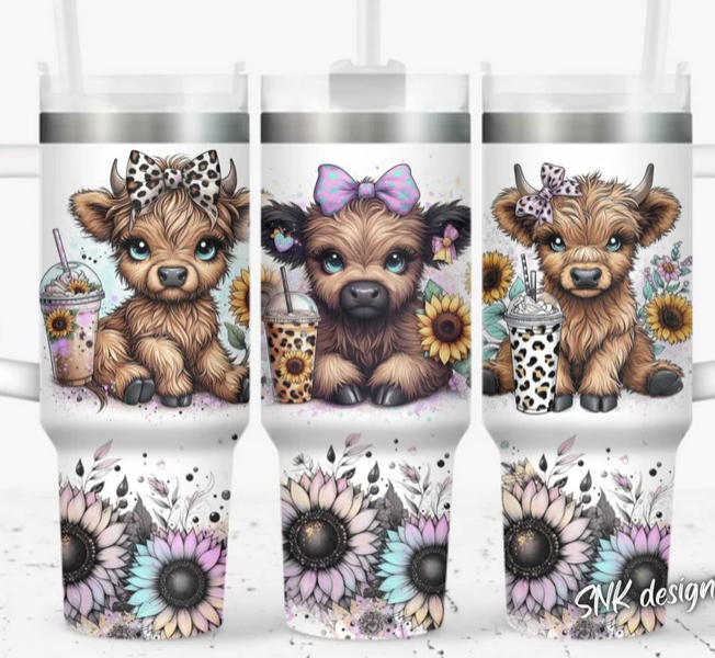 40 oz Highland Cow with Sunflowers and Coffee