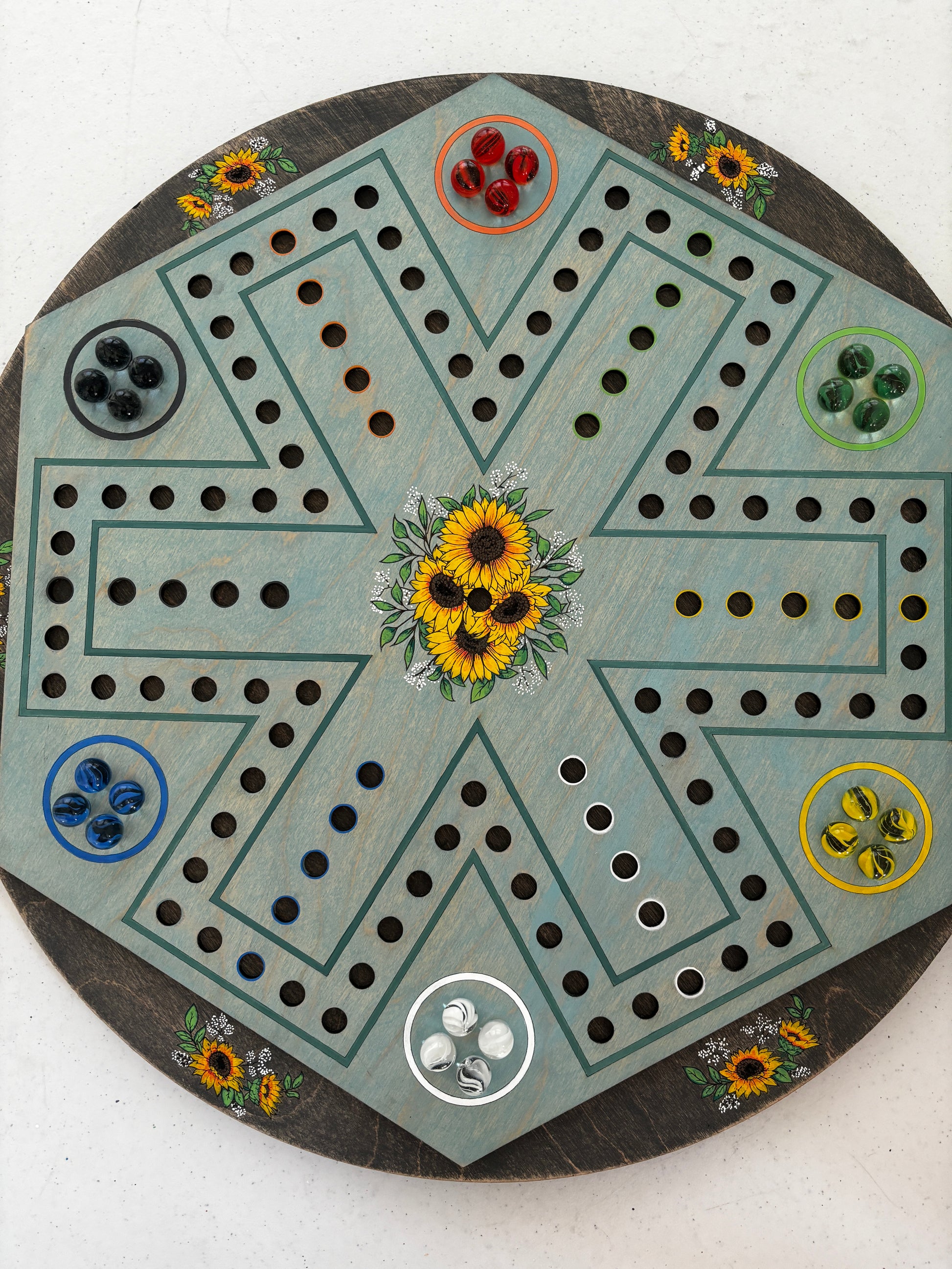 Experience the timeless fun of Aggravation Marble Board Game! Featuring a laser-cut real wood board with a hand-painted sealed matte finish, this game includes marbles and dice for hours of family entertainment. With the ability to play with up to six players, this game is perfect for any gathering.