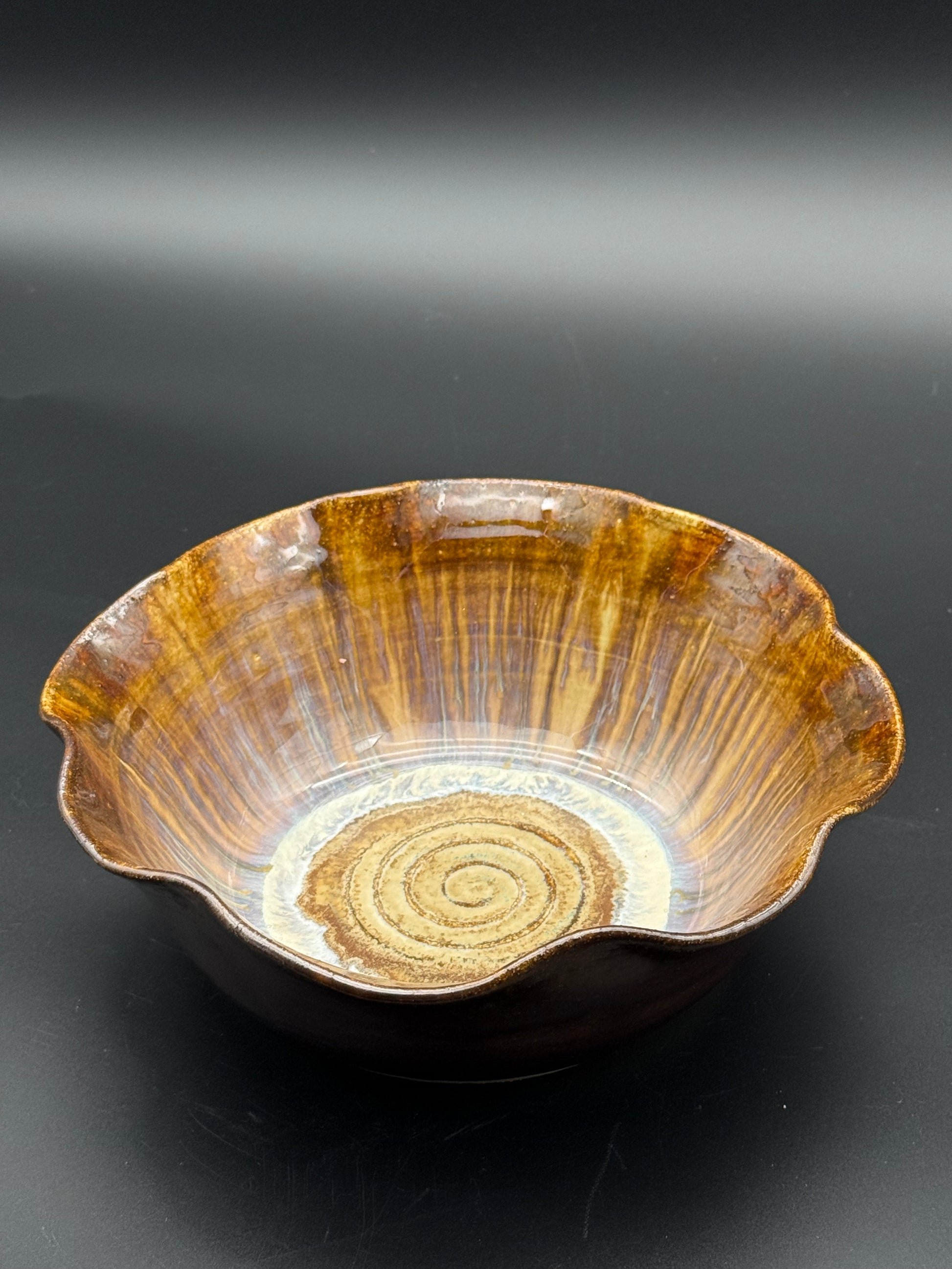 This exquisite hand-thrown bowl showcases the artisan's mastery of ceramic craftsmanship. Each piece is individually glazed in luminous pearlescent tones that evoke the iridescent beauty of oyster and abalone shells, creating subtle shifts in color and light. The fluted design adds visual depth and tactile interest to this functional work of art. Dishwasher safe for convenient care, it seamlessly transitions from everyday dining to special occasions.